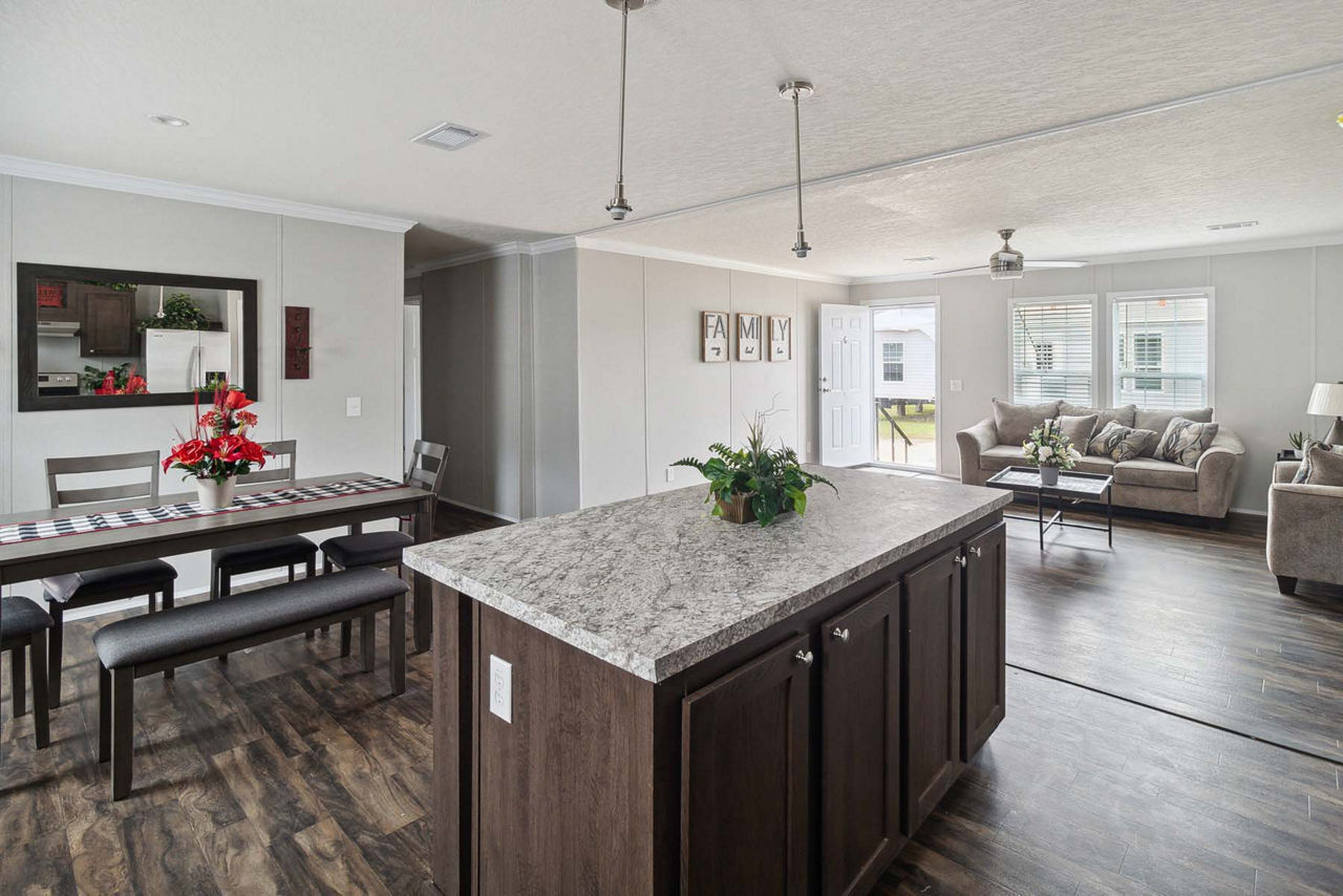 The 3272228HRN model, built by Champion Homes of Georgia, is a 2,136-square-foot home featuring 5 bedrooms and 2 bathrooms. This spacious layout provides ample room for family living, with an open floor plan and modern features. The 3272228HRN is a perfect balance of comfort and style, offering a contemporary yet functional home design.